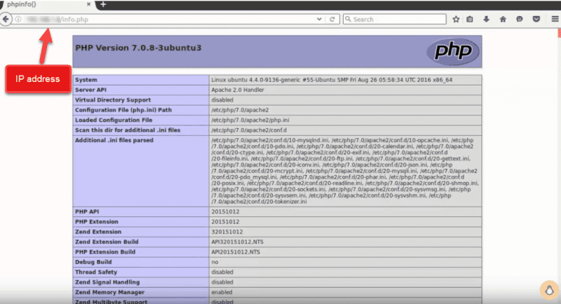 Åben en webbrowser og skriv din ip http://ipadresse/info.php